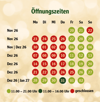 Internationale und nationale Kunsthandwerker und Aussteller präsentieren Ihnen hier in weihnachtlichem Ambiente in verschiedenen Kellern vom 20. November 2026 bis 02. Januar 2027 jeweils an den Wochenenden und Sonderöffnungstagen hochwertige Dekoartikel, Geschenkideen, kulinarische Spezialitäten, Produkte rund um Wein und Wellness, Antikes sowie kreatives Mode- und Schmuckdesign.